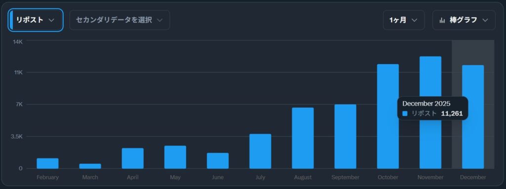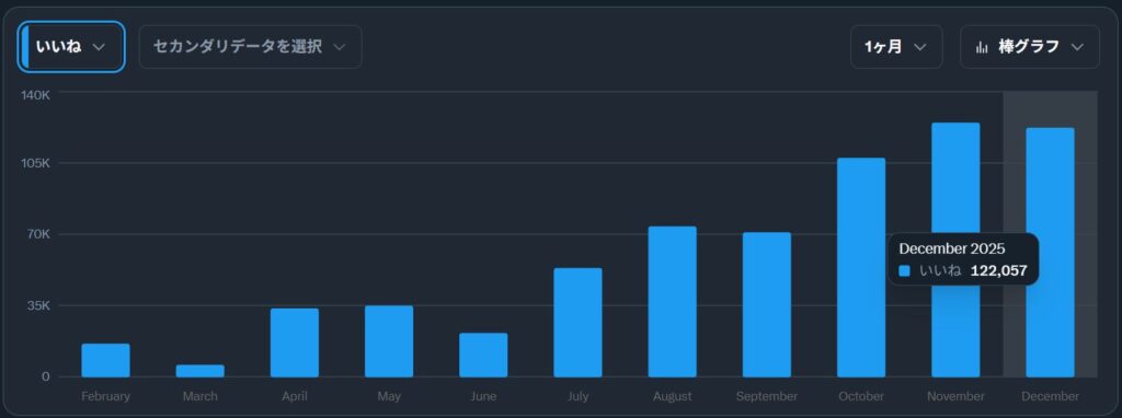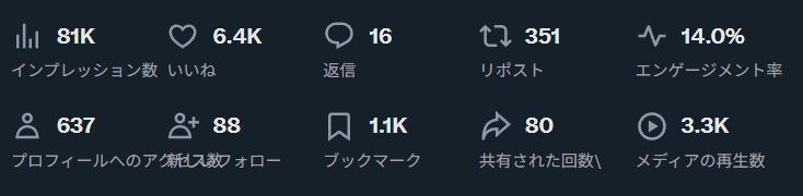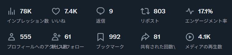 いいね、リポストが下がってるのはあまり良くない傾向と思われる。