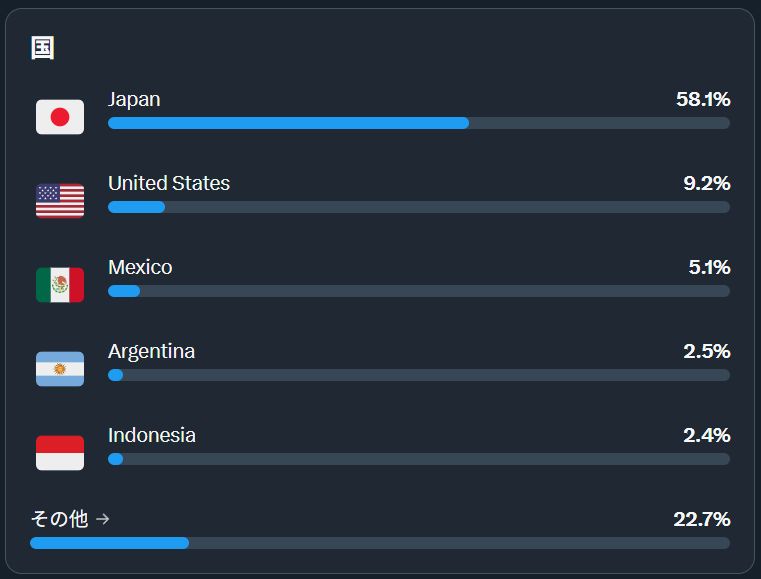 海外からのインプレッションが減ってると思っていたが、そんなに変わってないですね。