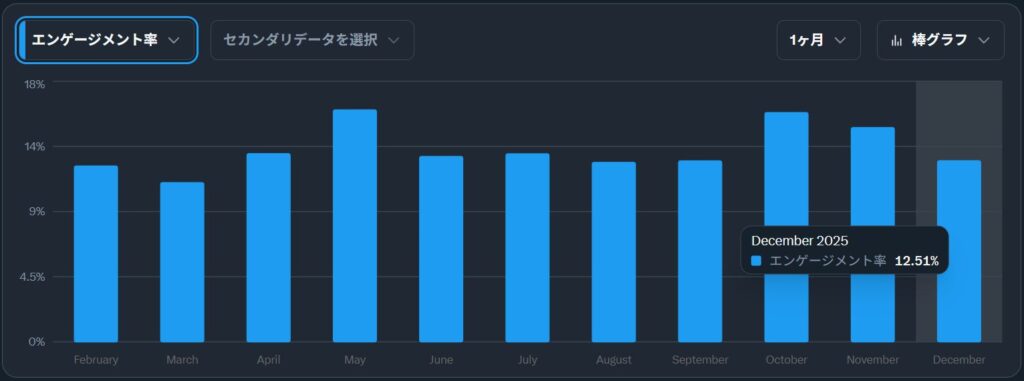 今月から引用を使っているのでインプレッションは伸びているが、エンゲージメント率はかなり下がっている。